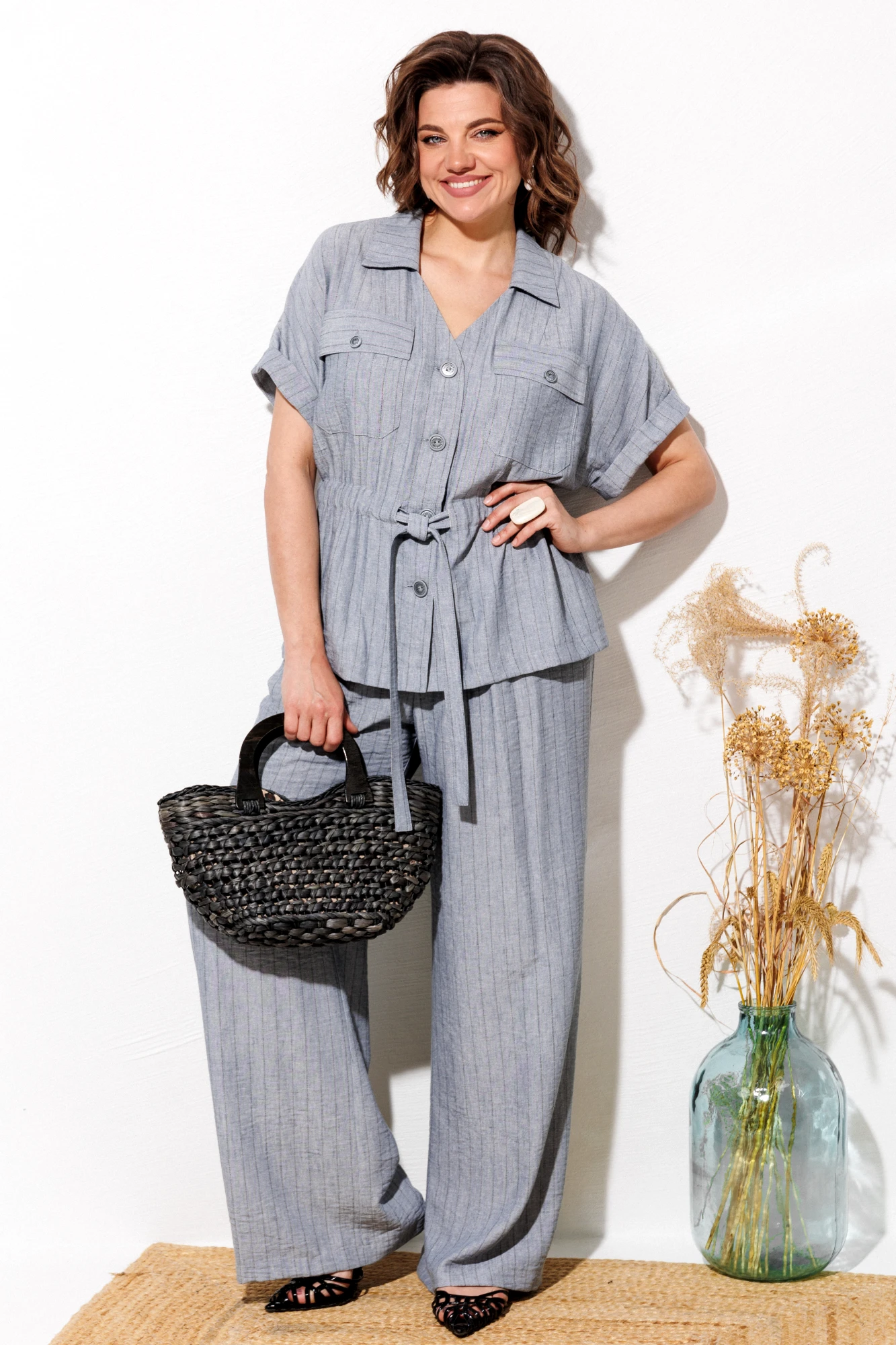 45% ПЭ, 44% вискоза, 3% лён, 8% х/б