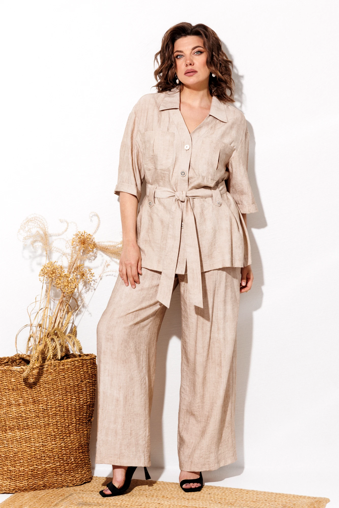Летний костюм, состоящий из рубашки и брюк выполнен из ле...
