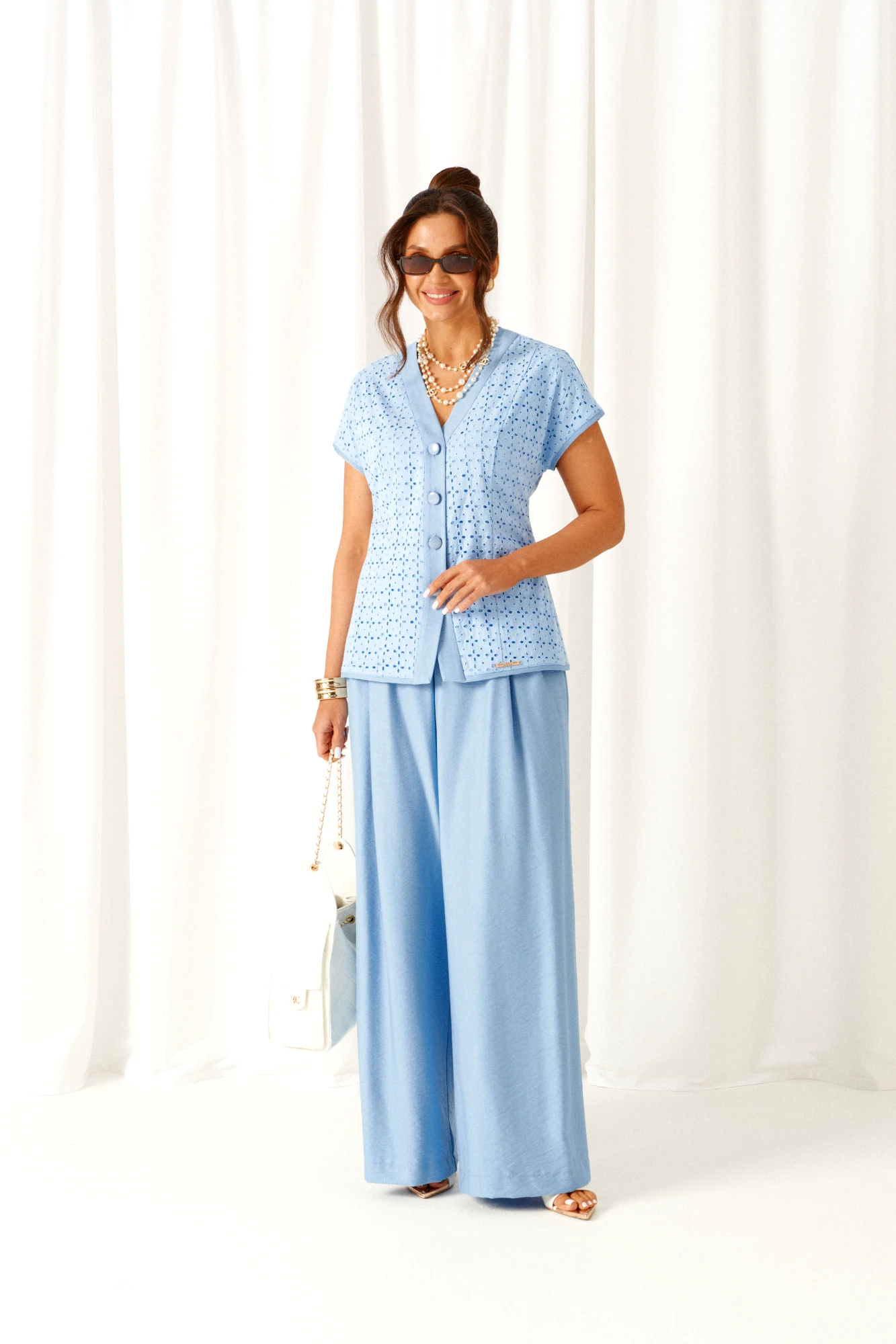 Жакет: хлопок 100%. Брюки: лен 80%, вискоза 20%