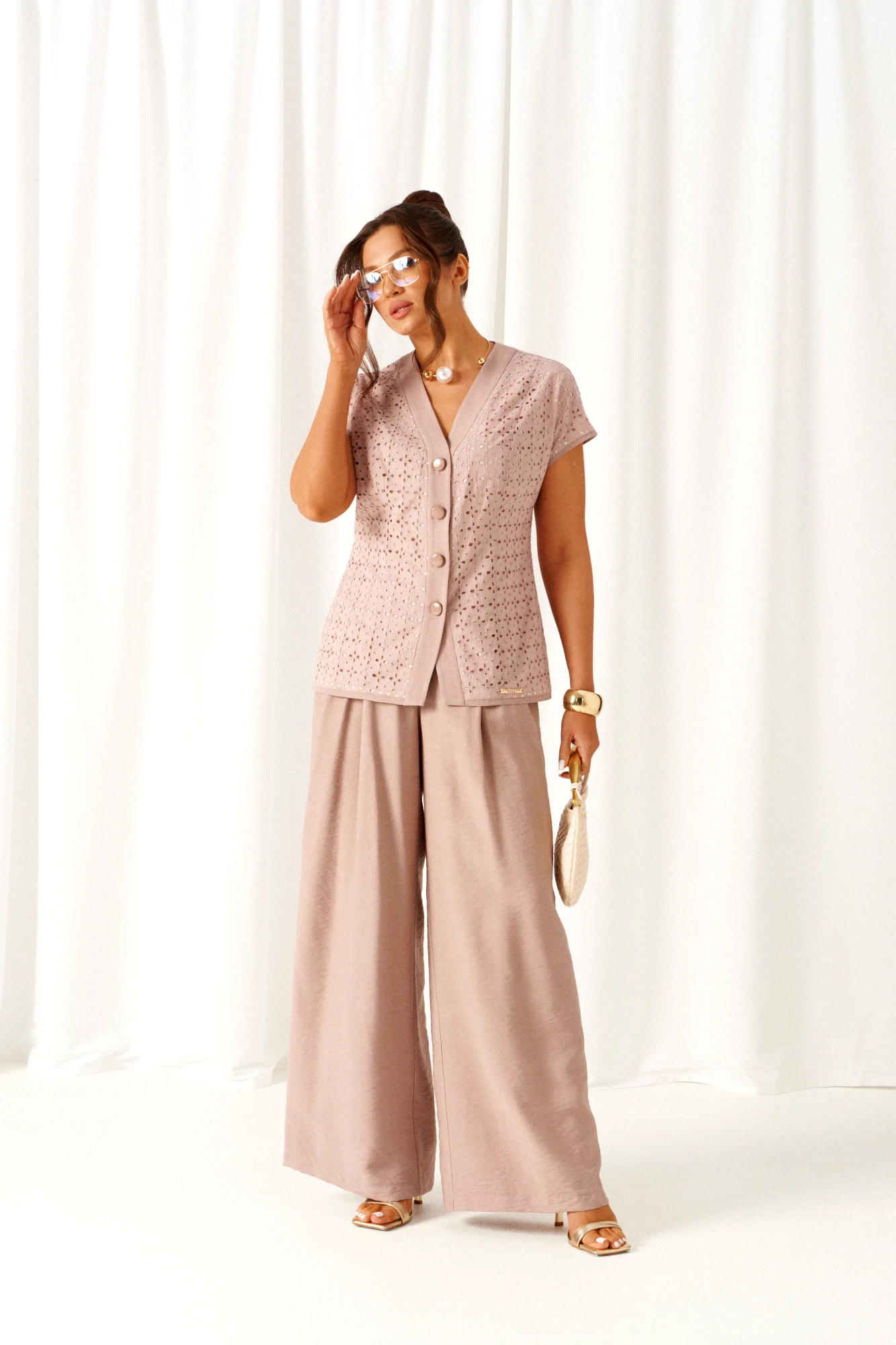 Жакет: хлопок 100%. Брюки: лен 80%, вискоза 20%
