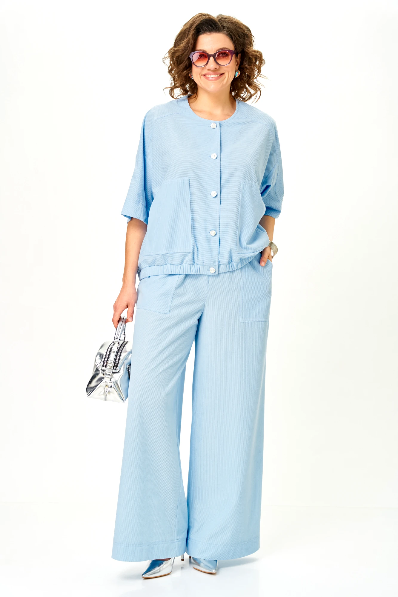 Летний брючный костюм из легкого вельвета, безупречный фа...