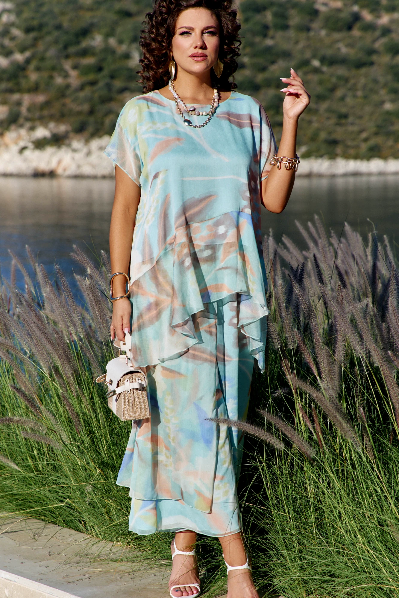 Летний костюм состоящий из блузки и широких брюк, из креш...