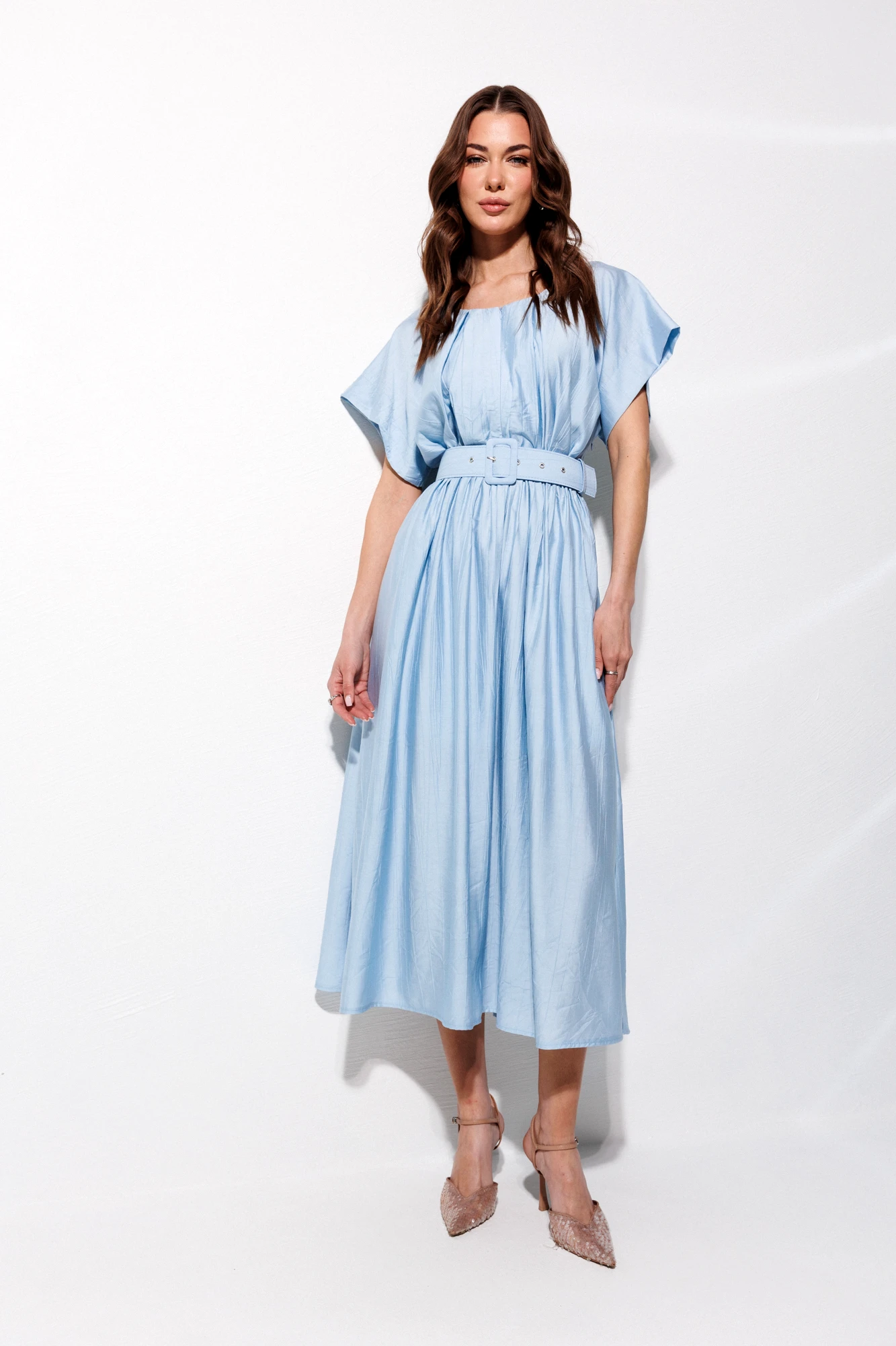 Платье полуприлегающего силуэта из струящейся ткани. Горл...